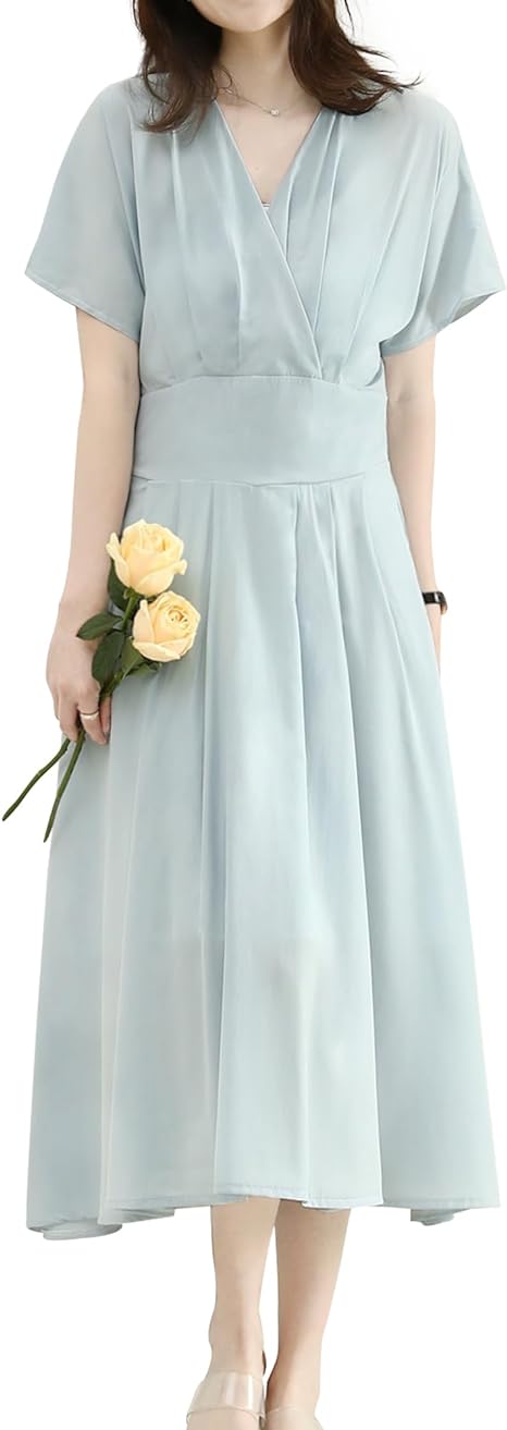 The polyester material is light and breathable, making it comfortable to wear. This short-sleeved dress feels soft and refreshing on the skin, and you can spend the summer in a refreshing way. The drapey fabric creates a sense of luxury with natural folds. It is lined, so you can wear it with confidence. Note: The side zipper makes it easy to put on and take off.
