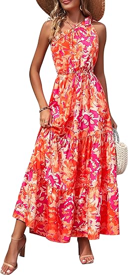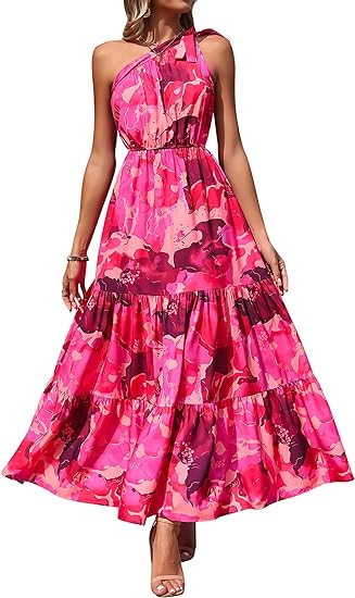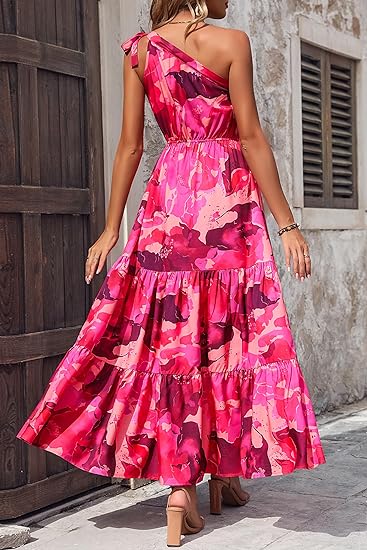 Unique design: Women's one shoulder long dress/Women's floral long dress/Women's sleeveless vest dress/High waisted A-line dress/Women's long flowing dress/Ruffle hem Bohemian dress/Dew shoulder Bohemian dress/Women's summer beach dress/Women's summer beach dress/Women's slim fit speaker dress/Women's flowing straight tube dress