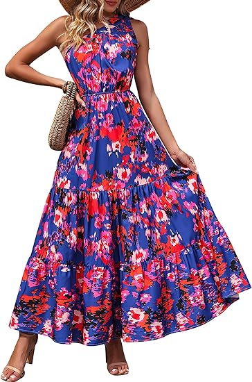 Fashion style: Off the shoulder is the highlight of this layered long dress, which can showcase your beautiful shoulders. The floral printed Bohemian dress exudes feminine charm, allowing you to stand out in the crowd. This sleeveless summer flowing dress looks particularly cool and is the top choice for summer dresses.