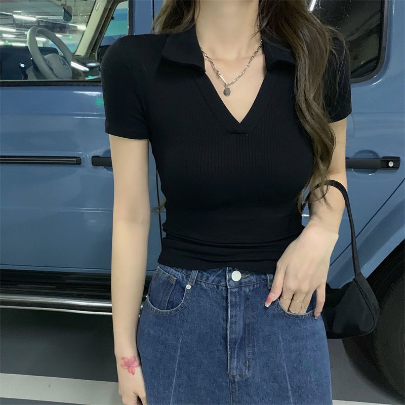 Ribbed on sleeves and neckline / Double stitching on bottom hem