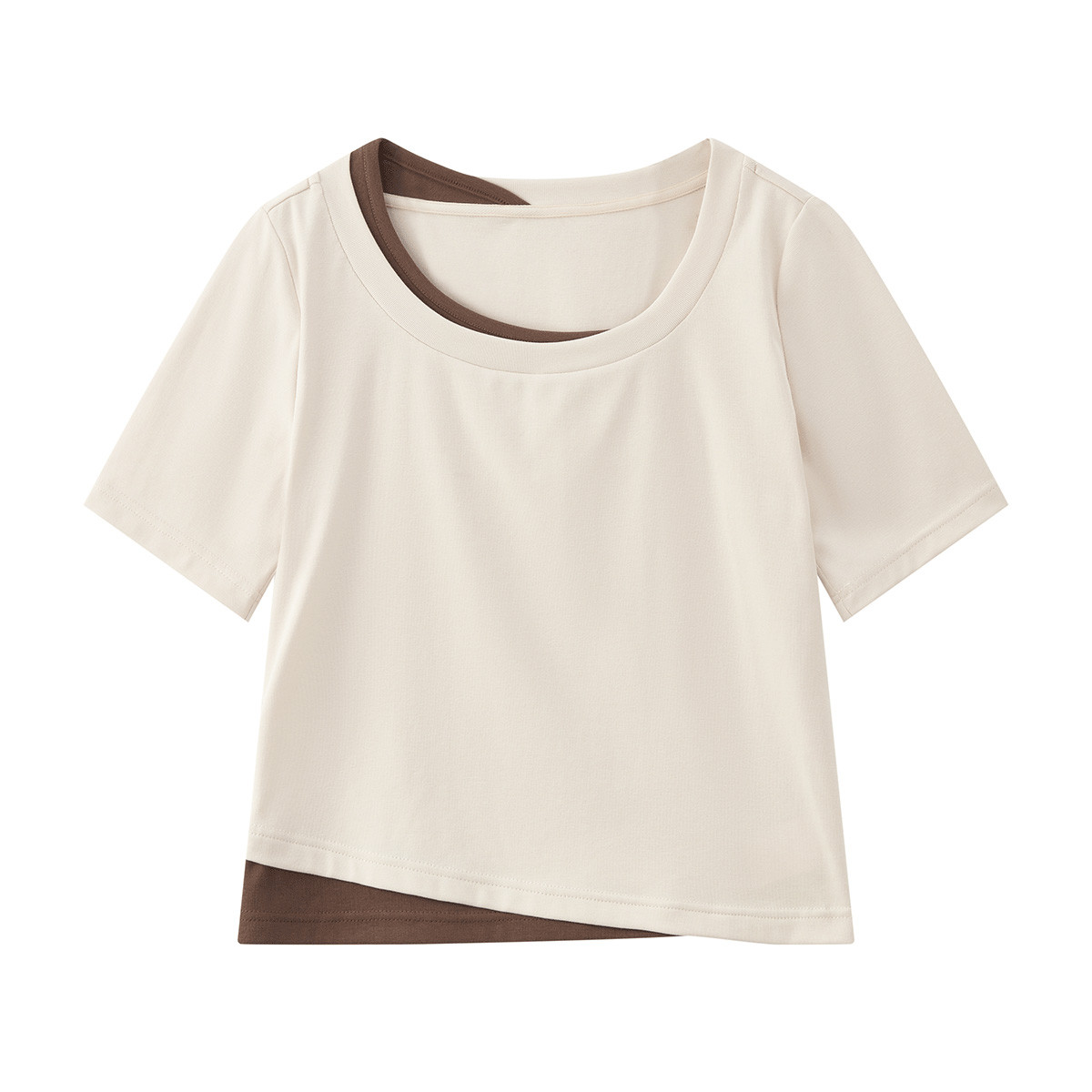 • Stylish design, irregular U-neck short-sleeved top, elegant T-shirt